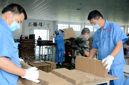 新疆局部暴發(fā)聚集性疫情后,該公司實行封閉式生產(chǎn),積極克服車間人員不足的困難,抽調(diào)公司業(yè)務(wù)人員充實到車間裁紙機(jī)和粘盒機(jī)生產(chǎn)崗位上,實行不間斷生產(chǎn),保證了包材供應(yīng),圓