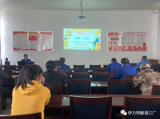 4月8日,伊力特釀酒三廠黨員活動室座無虛席,共產黨員張培軍和入黨積極分子畢建文正在為釀酒三廠全體黨員講授一堂別開生面的技術黨課——“釀酒之我見”。這是伊力特釀酒三廠黨支部2022年創新“黨建+”載體、實施“金虎銀虎﹒蝸牛倒數”黨建特色品牌的有力舉措。