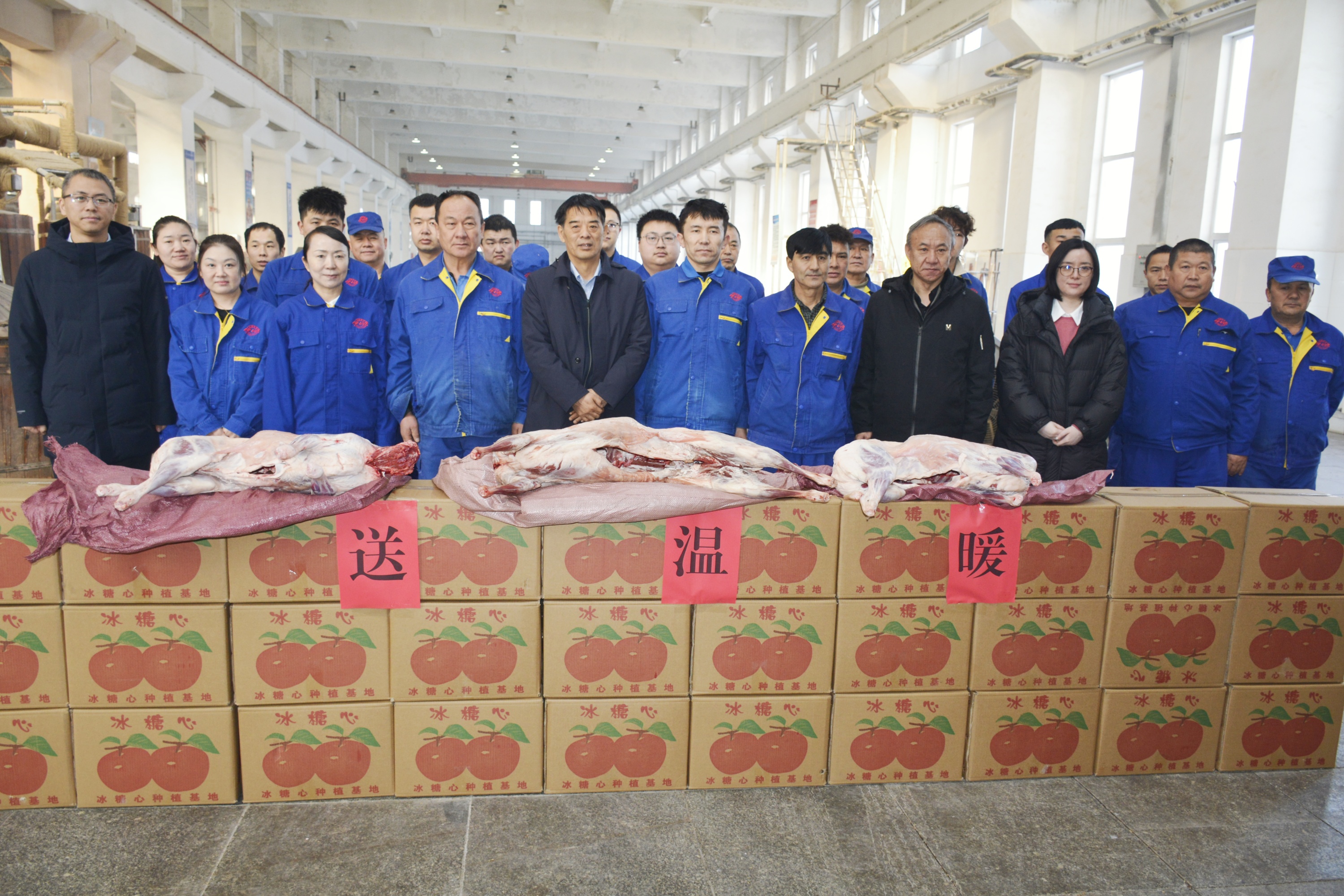 1月6日,兵團總工會黨組成員、副主席尤益民一行帶著對一線職工的深切關懷,在師總工會黨組成員、副主席李杰,伊力特公司黨委委員、紀委書記、工會主席王建芳等人的陪同下,深入伊力特釀酒四廠,開展了一場溫暖人心的慰問活動,為奮戰在一線的職工們送去了羊肉、水果等慰問品,將黨和政府以及工會組織的關愛與溫暖切實傳遞到每一位職工心中。