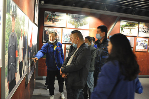在72團(tuán)微縮景觀前,黨員干部開心地看著家鄉(xiāng)變化,接踵而起的高樓,林立的工廠,纖陌縱橫,青山綠水,一幅現(xiàn)代化田園小鎮(zhèn)。
