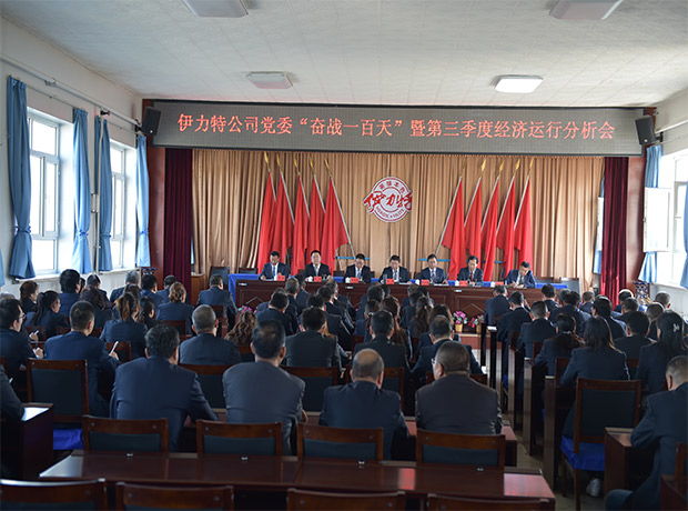 【張世哲報道】9月25日上午,伊力特公司召開 “奮戰一百天”暨黨委第三季度經濟運行分析會議,黨委書記、董事長陳智主持會議并強調,要結合“不忘初心、牢記使命”主題教育,切實增強抓經濟工作的本領,處理好穩定發展改革三者關系,提高經濟工作組織化程度,全力做好第四季度經濟工作,確保完成年度目標任務,推動公司高質量發展。公司中高層管理人員及機關全體參加會議。
